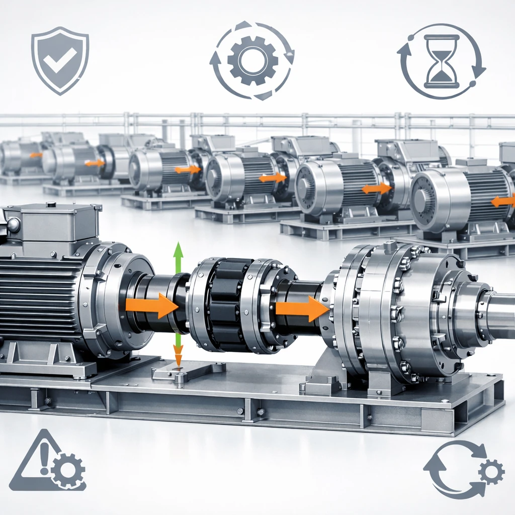 As a result, OEMs deliberately design for alignment forgiveness. This is where coupling selection becomes critical. Rigid torque transmission may satisfy static calculations but fails under real installation conditions.